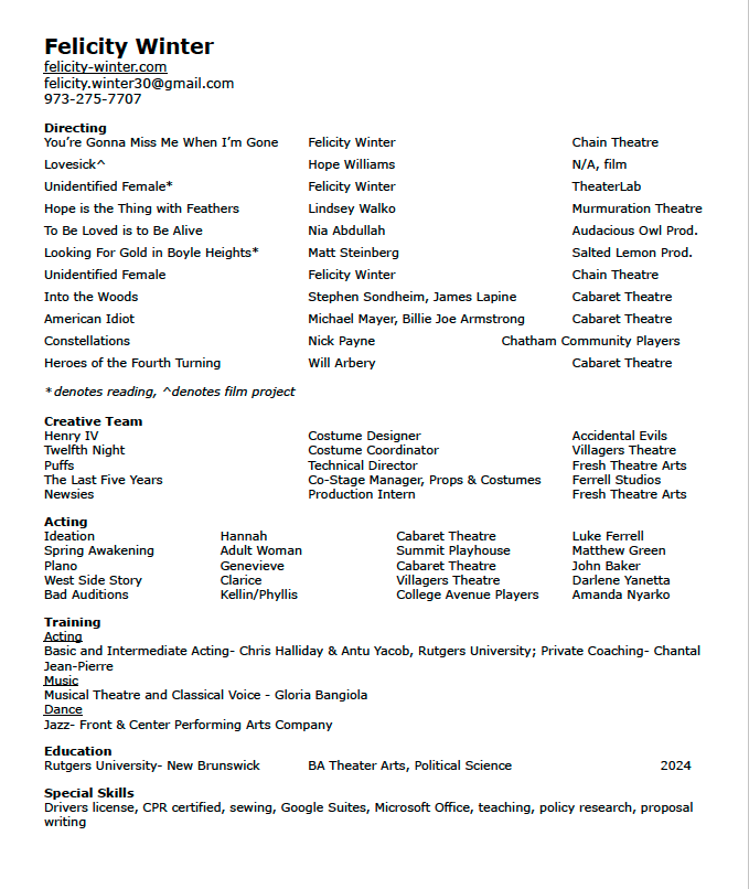 Directing Resume
